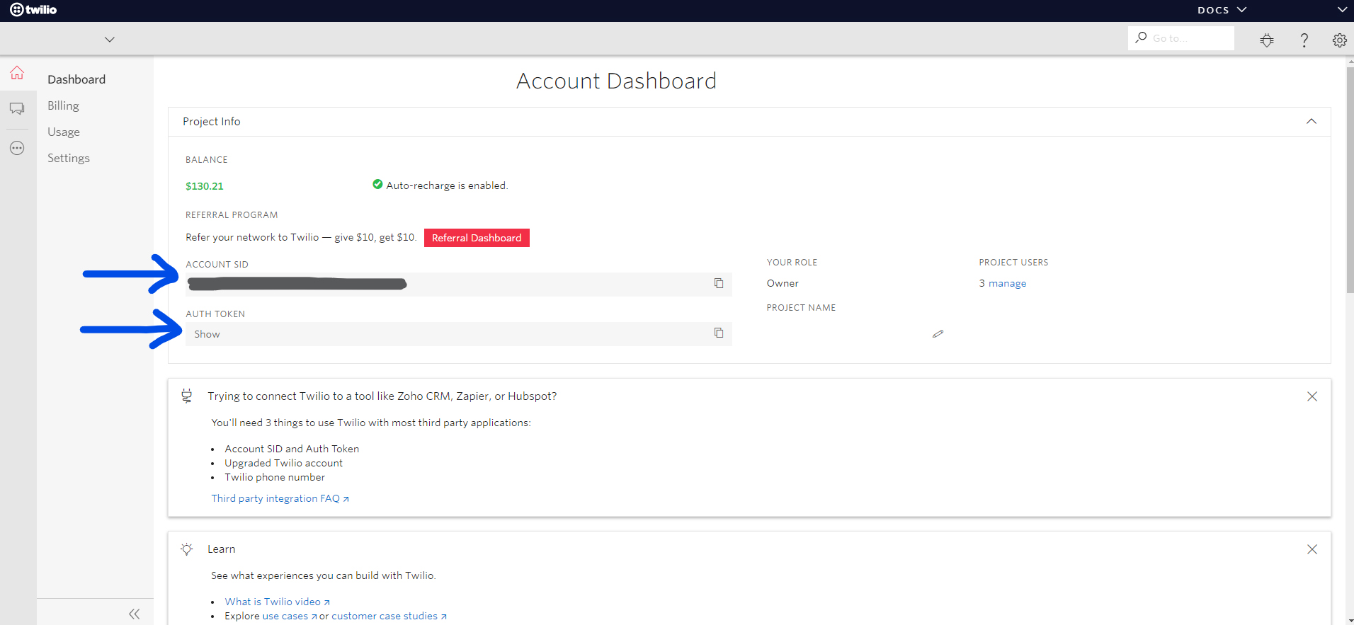 2) Your Auth Token.